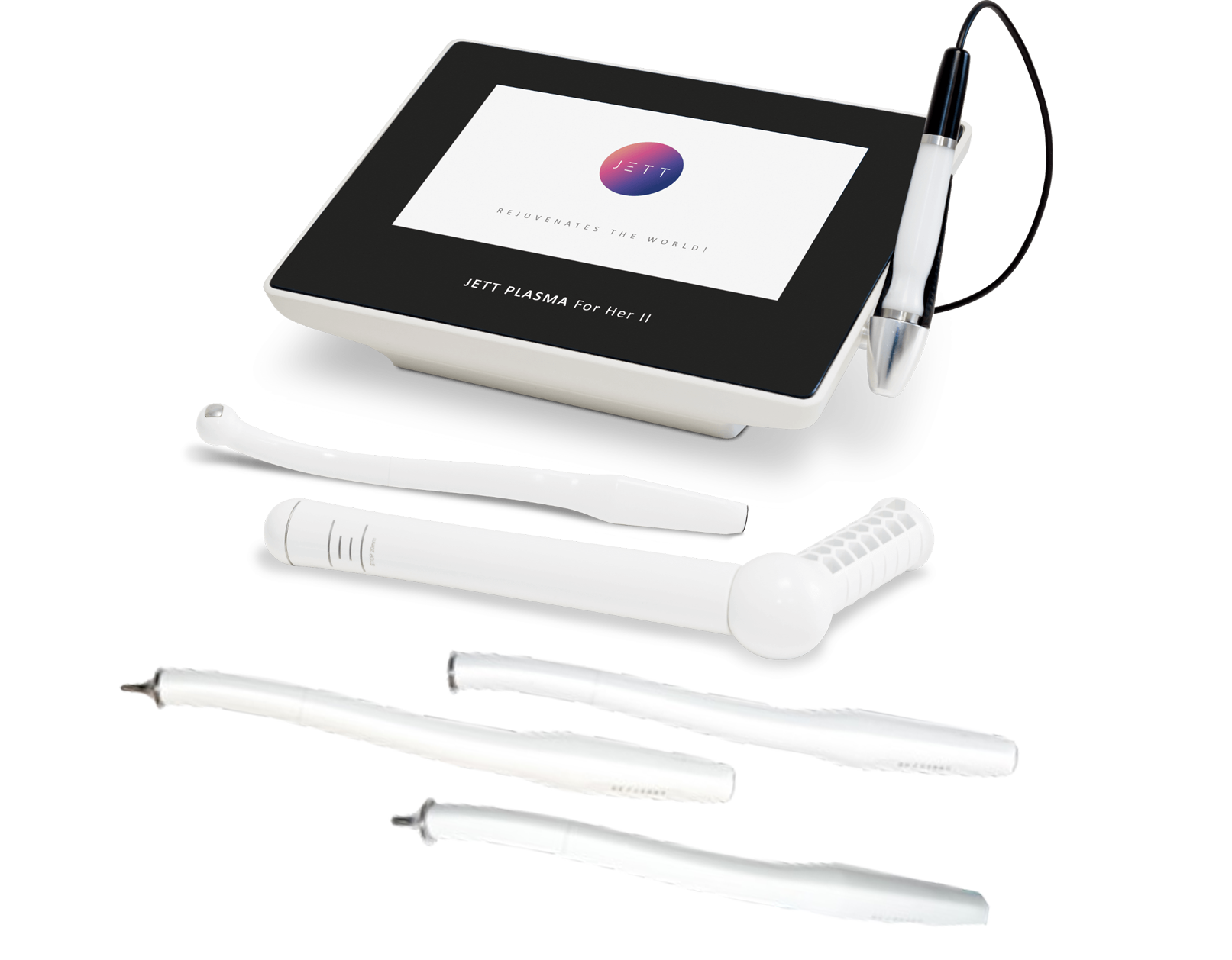 Nejnovějším přírůstkem do rodiny přístrojů je JETT PLASMA For Her II, který umožňuje ženám neinvazivně a pohodlně řešit problémy pojící se s vaginální laxitou. Přístroj JETT PLASMA For Her II se svými třemi speciálními aplikátory byl navržen tak, aby ošetření bylo efektivní a pro ženu pohodlné. Zjistěte, s čím dokáže JETT PLASMA For Her II ženám pomoci.